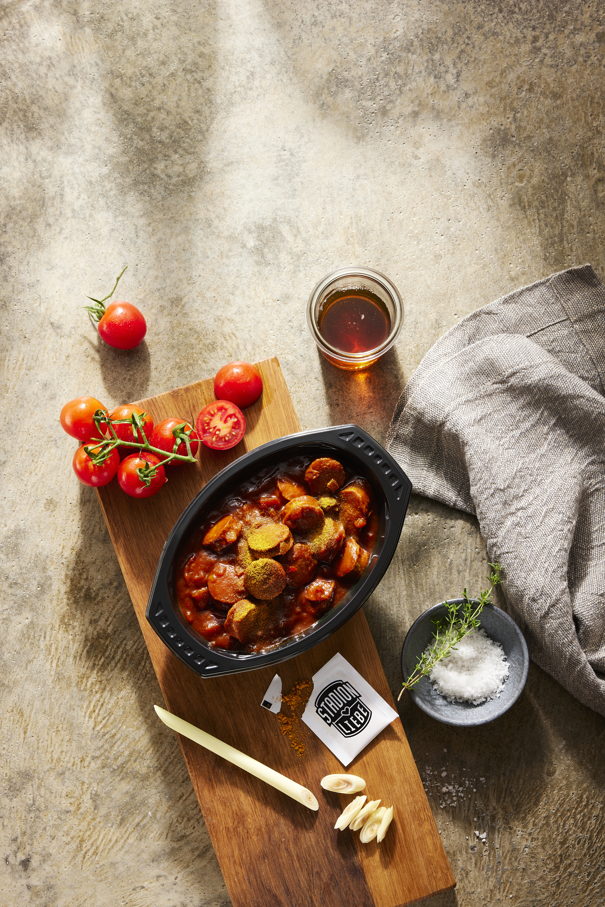 Damit du deinen Lieblingsimbiss in deiner heimischen Bude genießen kannst, haben wir eine Currywurst erfunden, die du einfach, schnell und unkompliziert zuhause zubereiten kannst.